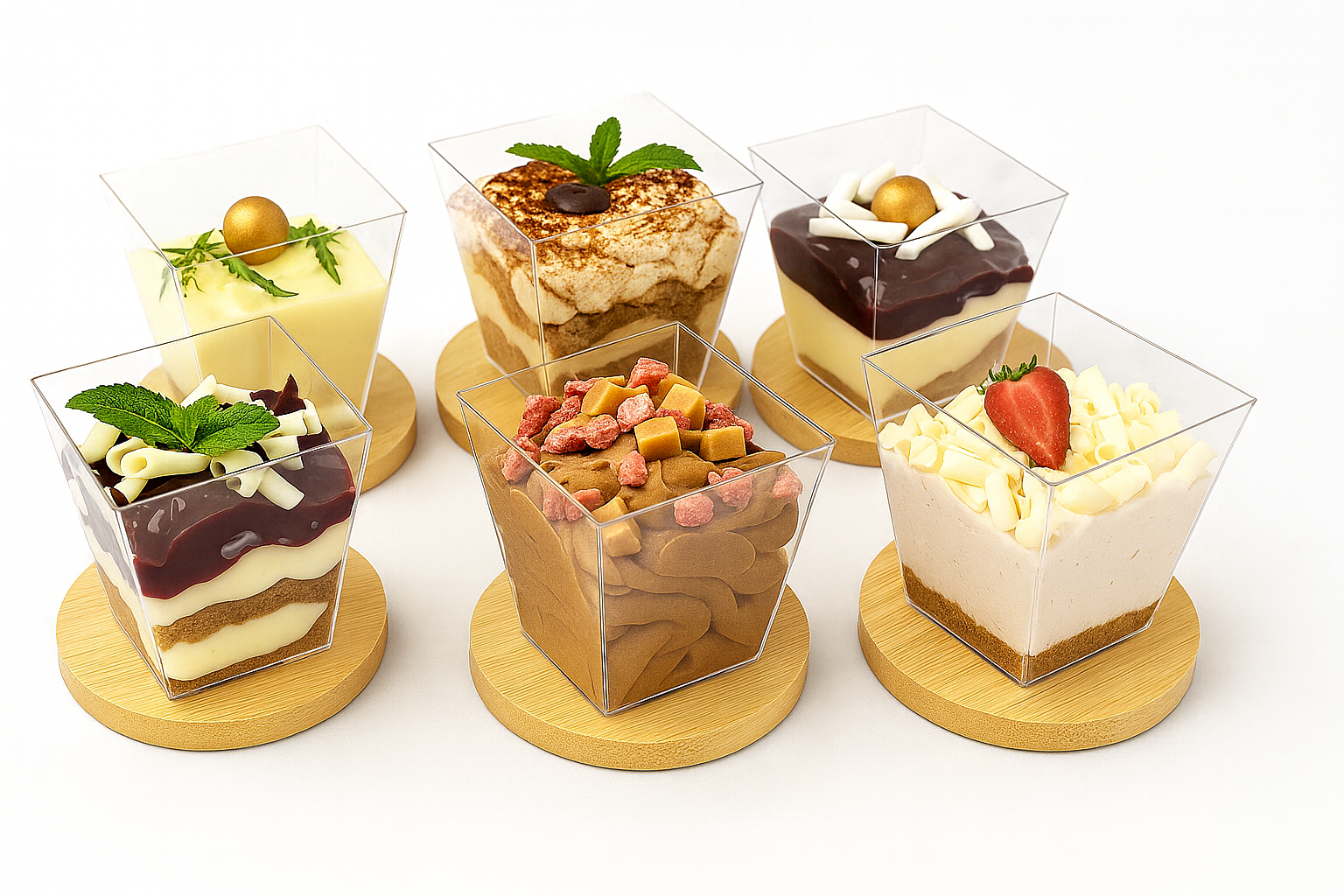 Een fluweelzachte vanille pannacotta, afgewerkt met een kleurrijke topping van bosvruchten voor een frisse en elegante bite. - Amuse Trifle van monchou – 2 stuks